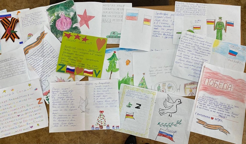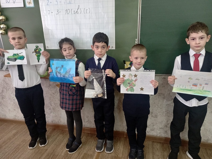 Пока наш Томаев Сослан обучает ребят – Булацева Т., Клешиц В., Гурциева А., Гутиева Д. (кл.рук. 9-х и 10-х классов Моураова Л.К., Бугулова Л.М. и Шелыкалова Н.Г.) как плести правильно сети, как вязать узлы, наши Орлята России, учащиеся младших классов (кл.рук. Цховребова Б.М., Варламова Э.С., Ходова Л.Р., Козаева Э.В.) пишут старательно письма-поддержки солдату, готовят свои рисунки и поделки, чтобы своим теплом согреть и поддержать ребят на СВО.
