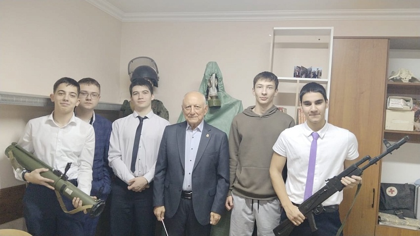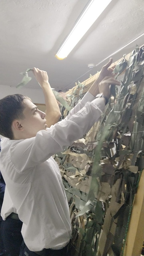 Подходит к концу наша вторая маскировочная сеть, которую мы плетем совместно с медколледжем. Сегодня, Гецаев Валерий Афанасьевич, военрук медколледжа, провел беседу с нашим учащимися.